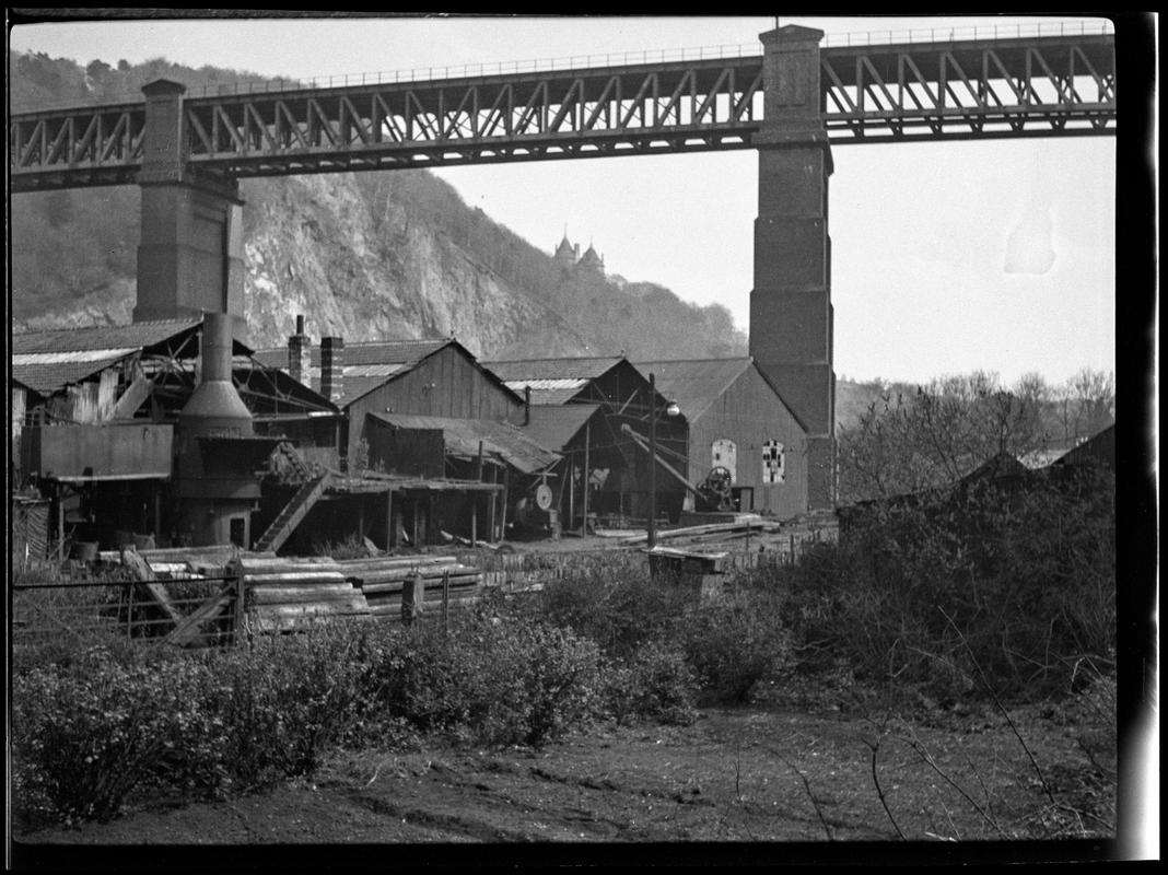 Black and white photograph of Neath (Glam) tramcars, either not in use or under repair