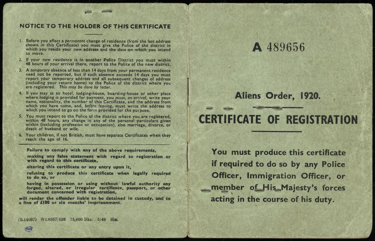 Digital copy of 'Control Commission for Germany (British Zone) PWX/DP Registration/Identity Card' issued to Wasyl ('Bill') Welykyi, 1947.