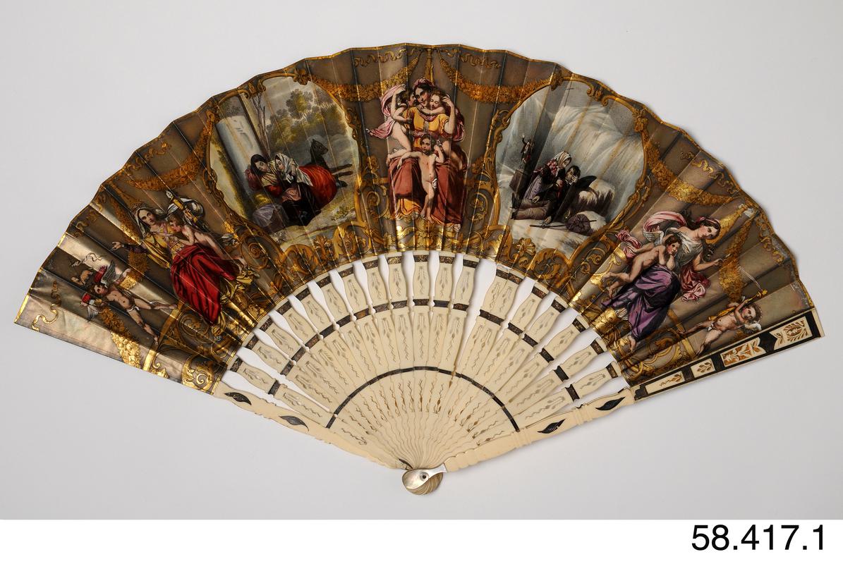 Vinaigrette of clear circular glass with facetted sides. On the brass top is an enamelled portrait of an 18th Century boy.