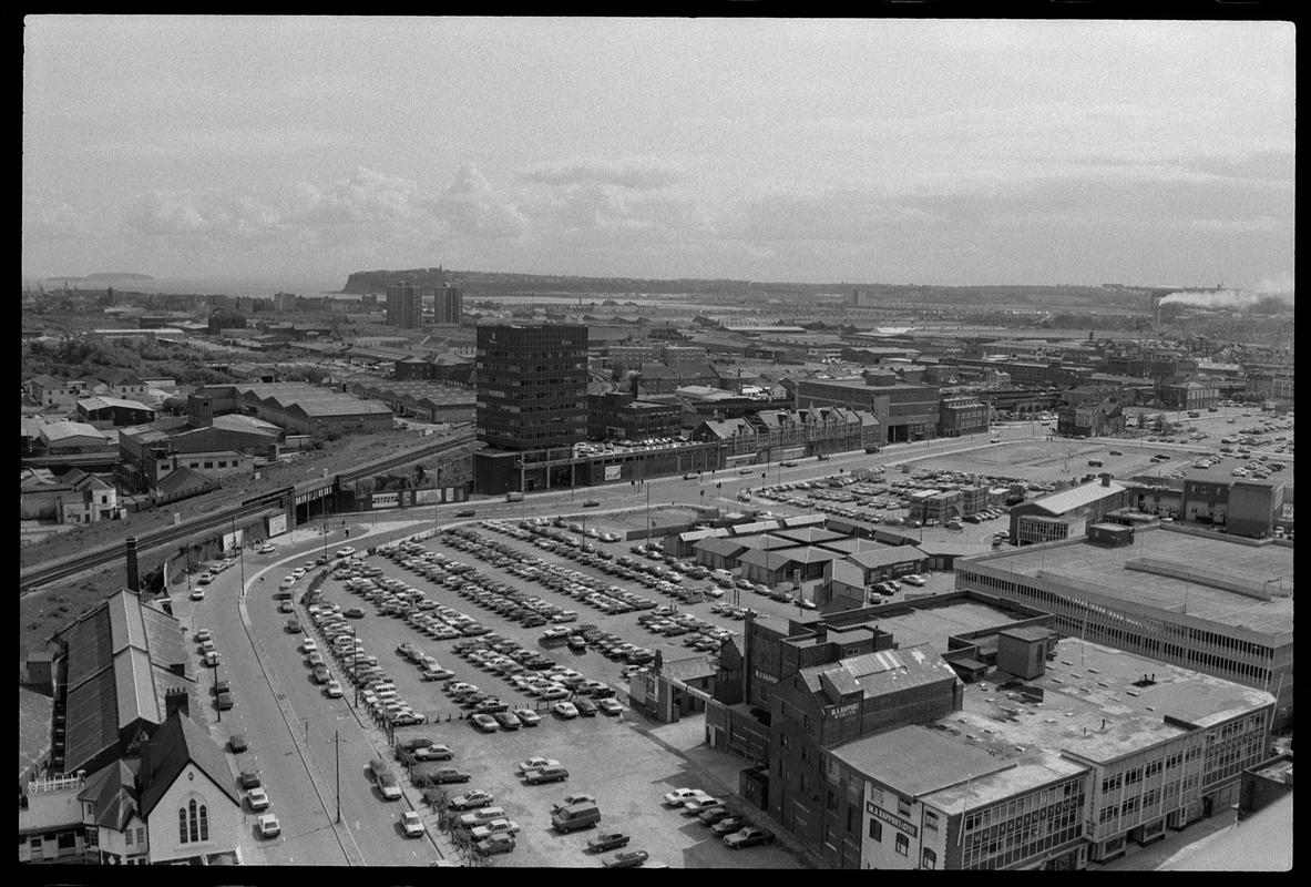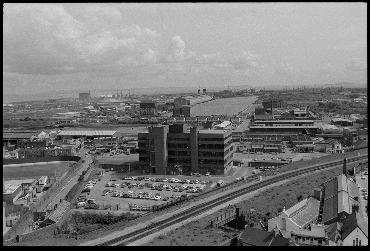 View of a railway line and railway crossing sign, Cardiff Docks.