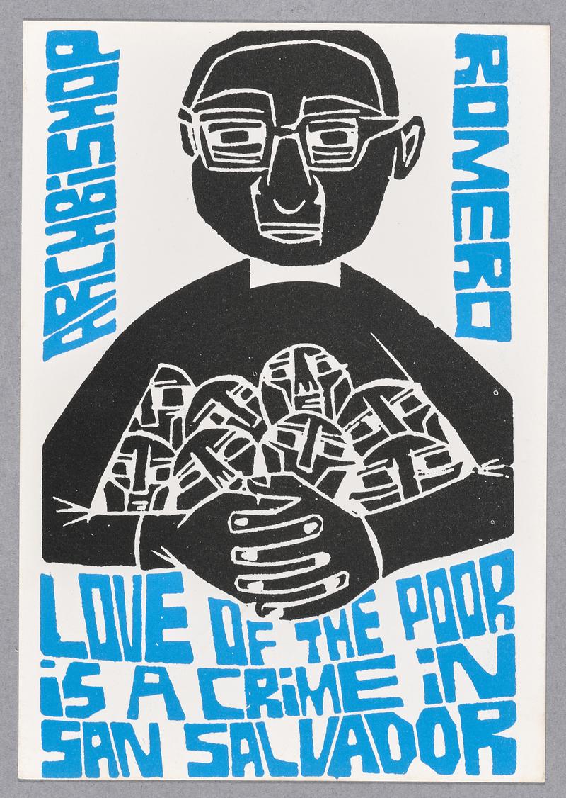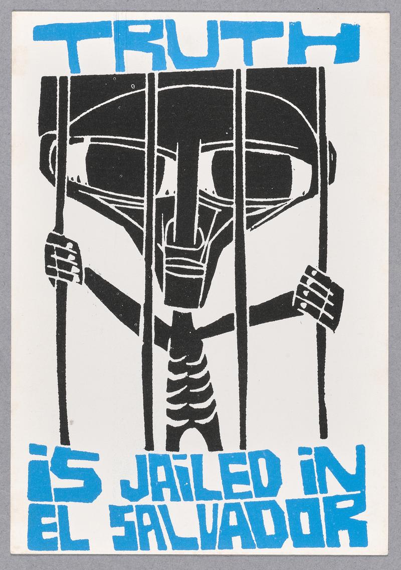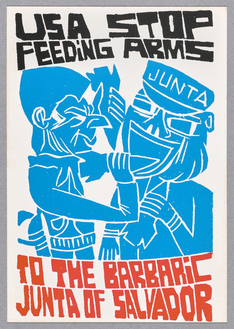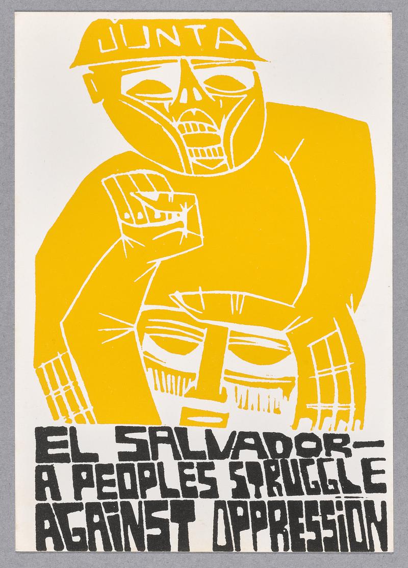 Postcard designed by Paul Peter Piech for the El Salvador Solidarity Campaign, 1980s. Part of a set of six bought at the time by Alun Burge.