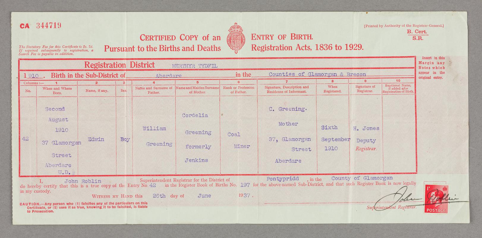 Birth certificate