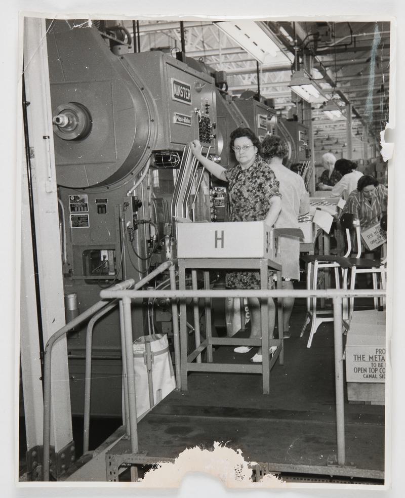 Assembly line for Nescafe coffee tins at The Metal Box Company Ltd, Neath.
