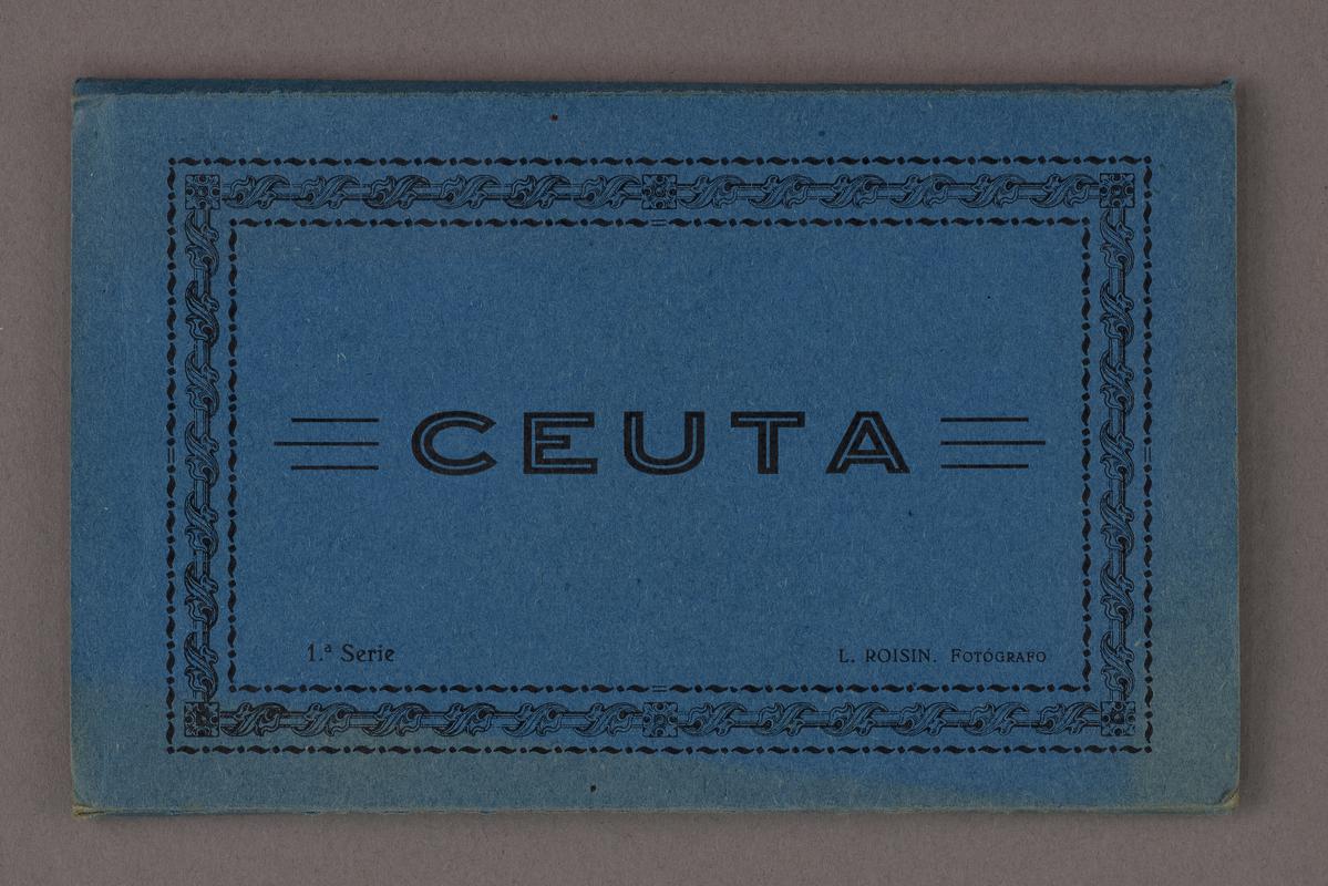 a book of postcards from Lisbon, Portugal; contains 10 sepia postcards depicting various scenes; detachable from book; slate green cover, with 'Recordacao de Lisboa' in gold lettering.