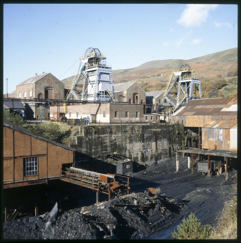 Black and white film negative showing a general surface view of Oakwood Colliery, photographed from a publication. 'Oakwood Colliery' is transcribed from original negative bag.