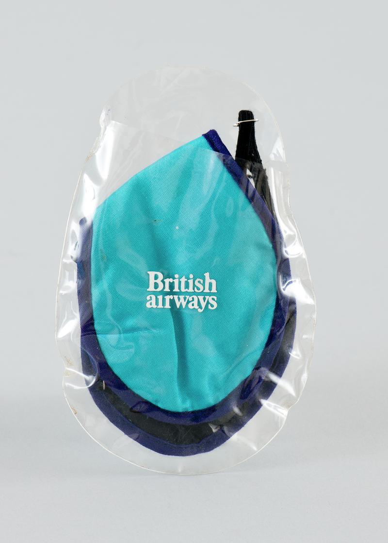 Dust respirator consisting of black rubber moulded facepiece with black rubber strap, and two grey plastic filters at front. Label attached with typed note.