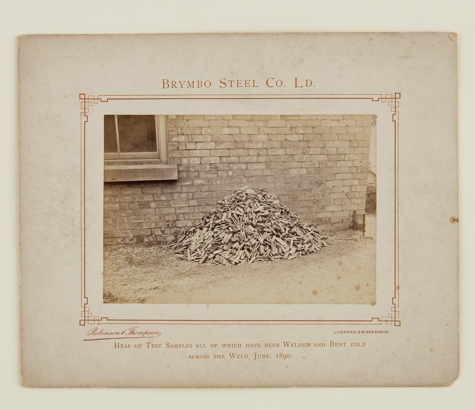 Railway wagon label for The Brymbo Steel Co., Ld., Plas Power, Near Wrexham, for destination Brymbo for selves, 1917. Black print on white card.