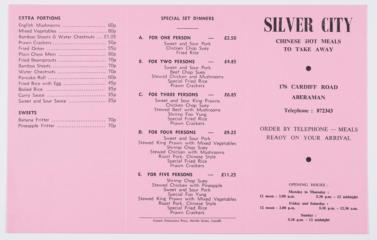 Bill printed for 'Eurasian Restaurant', an Indian restaurant in Canton. Handwritten order details on the front. Stamped with date 28 March 1979.