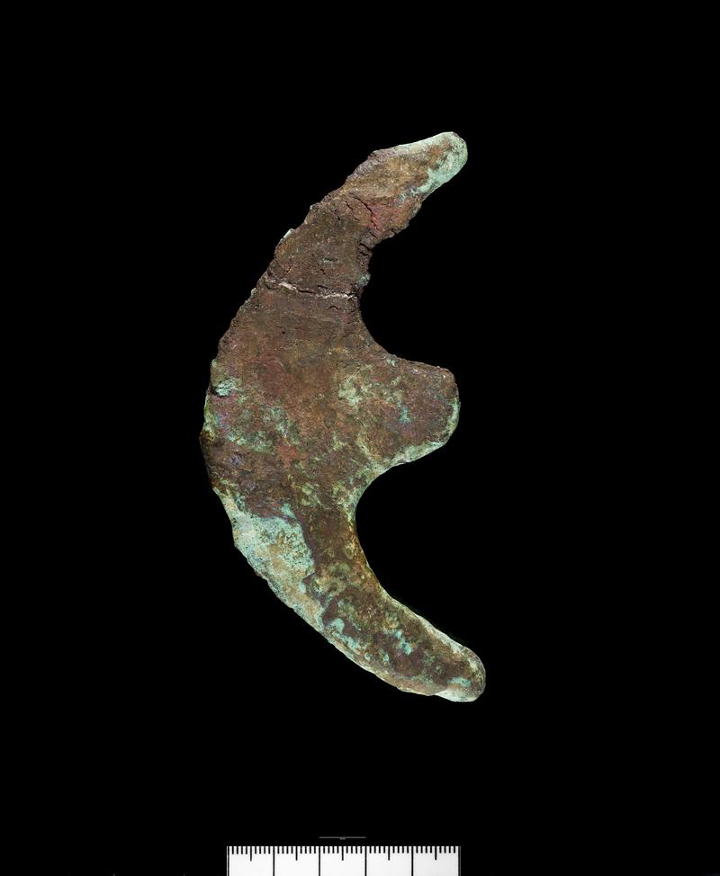 Part of a hoard, dating to the period 50-75 CE. It was buried at a time when the Silures, the native tribe of south-east Wales, were fighting a guerilla war against the Romans. The hoard consists of a mixture of both native and Roman military objects.