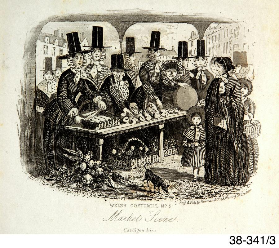 Engraving of a group of children by an ornate tomb near the sea. Glazed, in wooden frame with gilt inner edge.