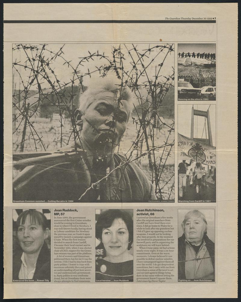 A newspaper cutting from The Times dated Tuesday January 4th, 1983 describing the release on bail of 44 women who were part of the Women Peace Camp at Greenham Common and who were arrested on New Years Day for scaling the fence at the nuclear air base.