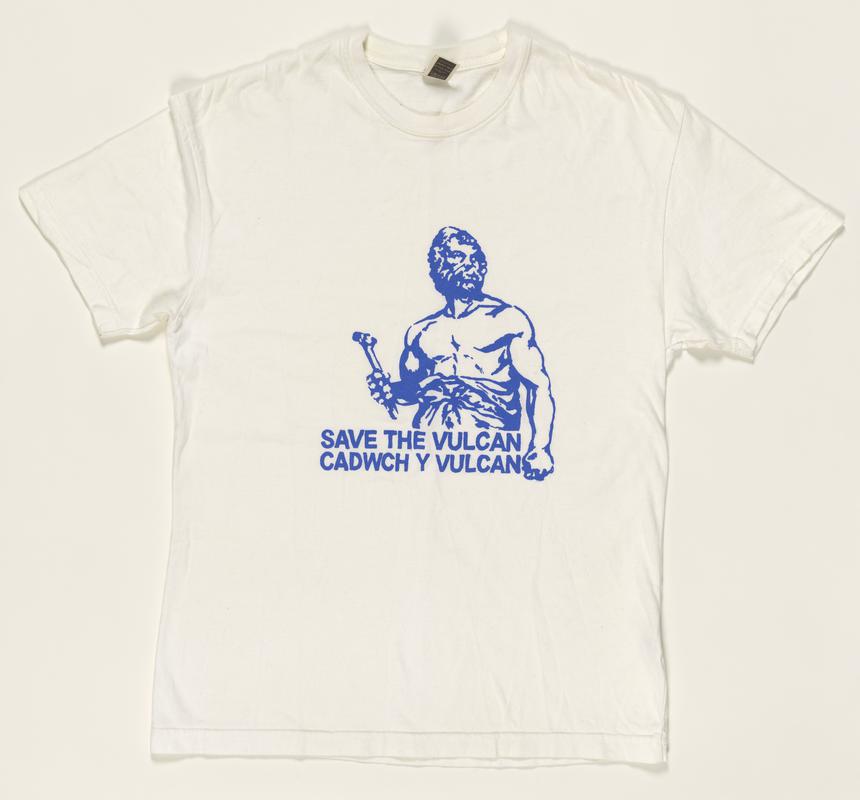 Banner of the Cardiff branch of the Anti-Apartheid movement. Painted in about 1977 by Gerda Roper at her home in Barry Island. Oil on canvas featuring a group of 10 people on a blue background. Above is the inscription 'ANTI-APARTHEID' in blue and 'CARDIFF WALES' in red lettering.