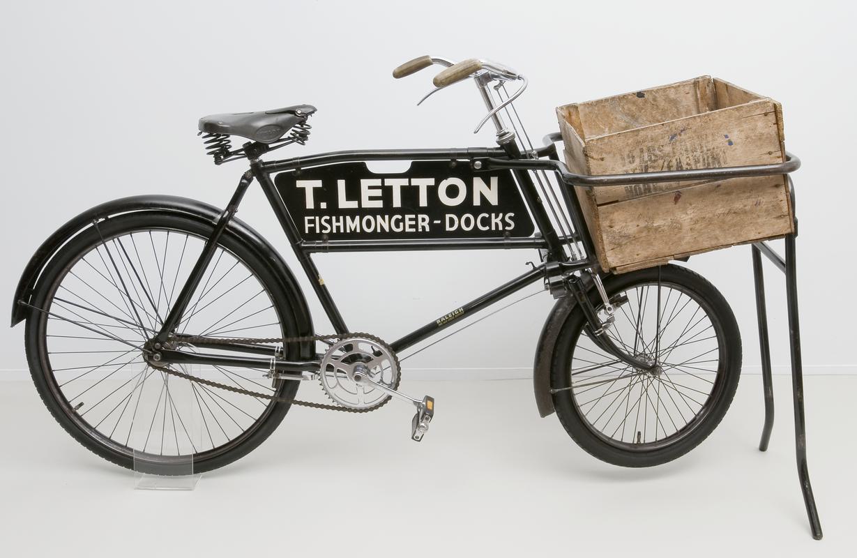 Bell from one of the last trams to run in Cardiff. Circular with bracket for attachment and "clapper" on outside.