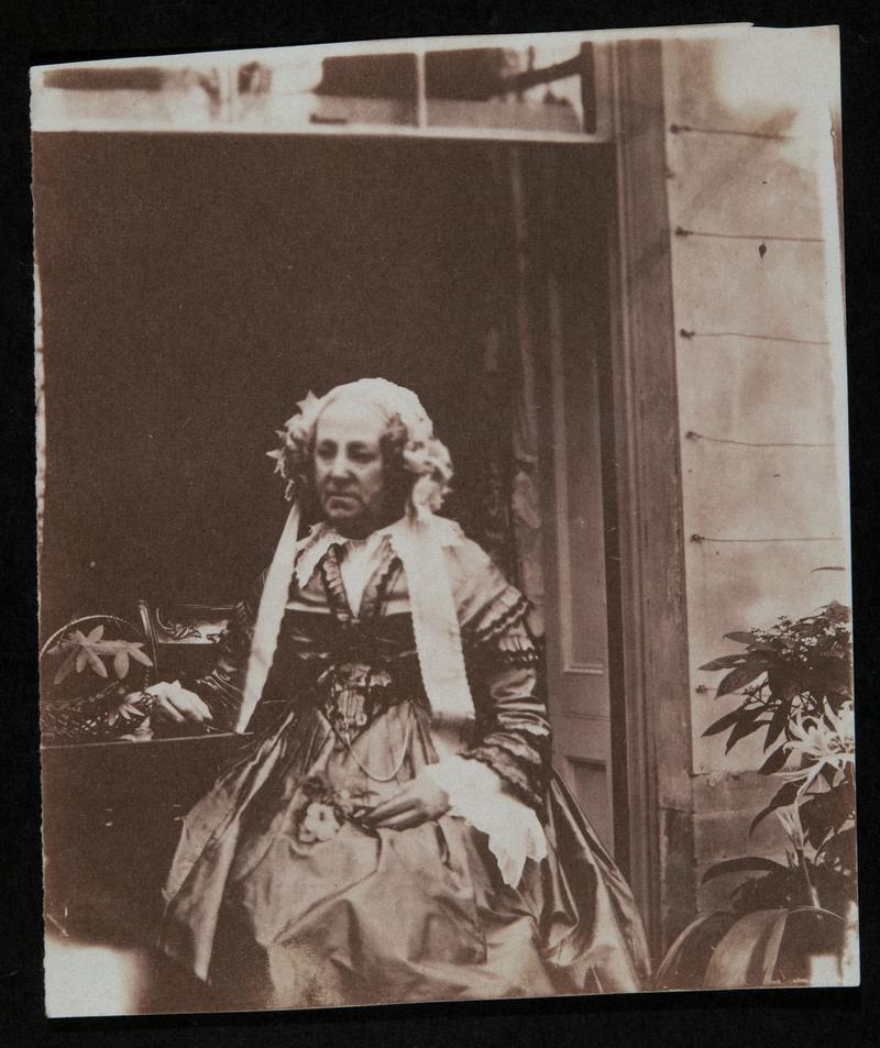 Mounted salted paper print. All corners of photo. clipped. Photo. outlined in black ink on mount.