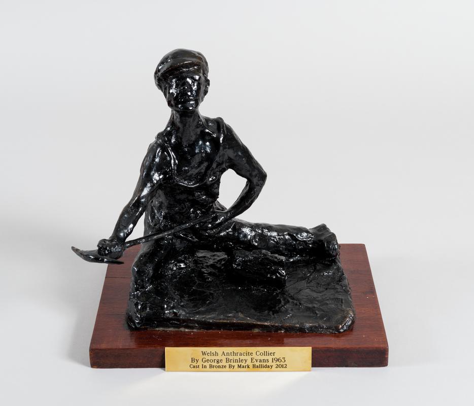 Evans, George Brinley (Mr) (Evans worked at Onllwyn Colliery. As an artist the material he most often used was household emulsion and watercolour on cheap paper. He recorded miners' working methods and technical expertise and resilience in the face of danger. After losing an eye in a mining accident in 1961, he turned to modelling figurines of his workmates and national heroes, using cheap and alternative material - a wire armature is covered in layers of old nylon stockings soaked in plaster, which is then teased into shape and sprayed with car paint.)