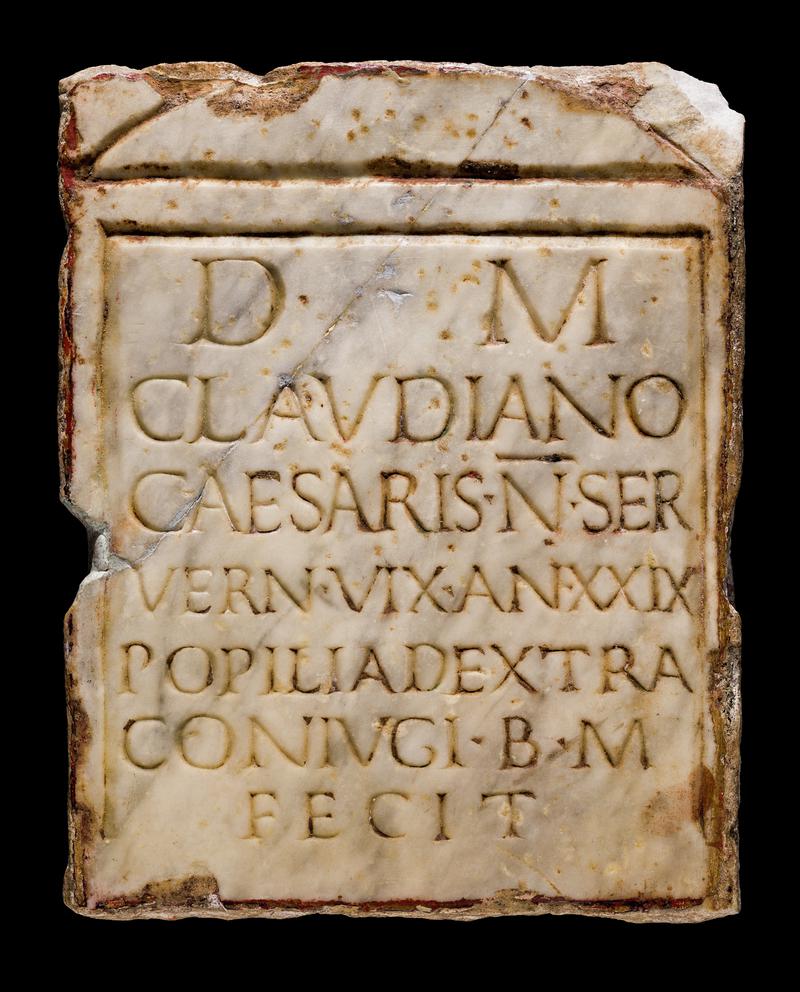 Fragment of a commemorative tablet. Lettering painted red (modern).