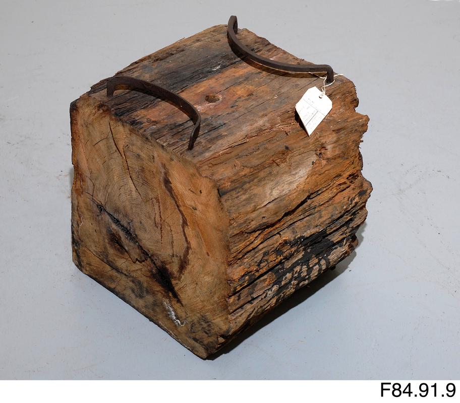 Iron pattern for heel shapes. Placed in press to cut shapes in leather.
