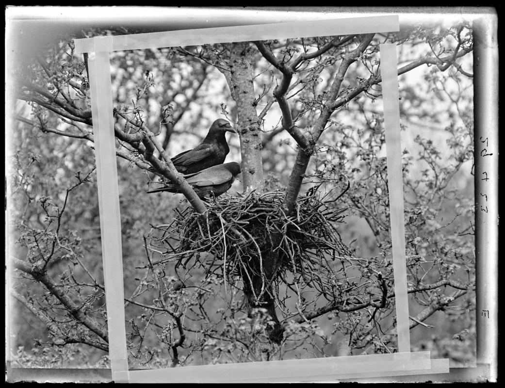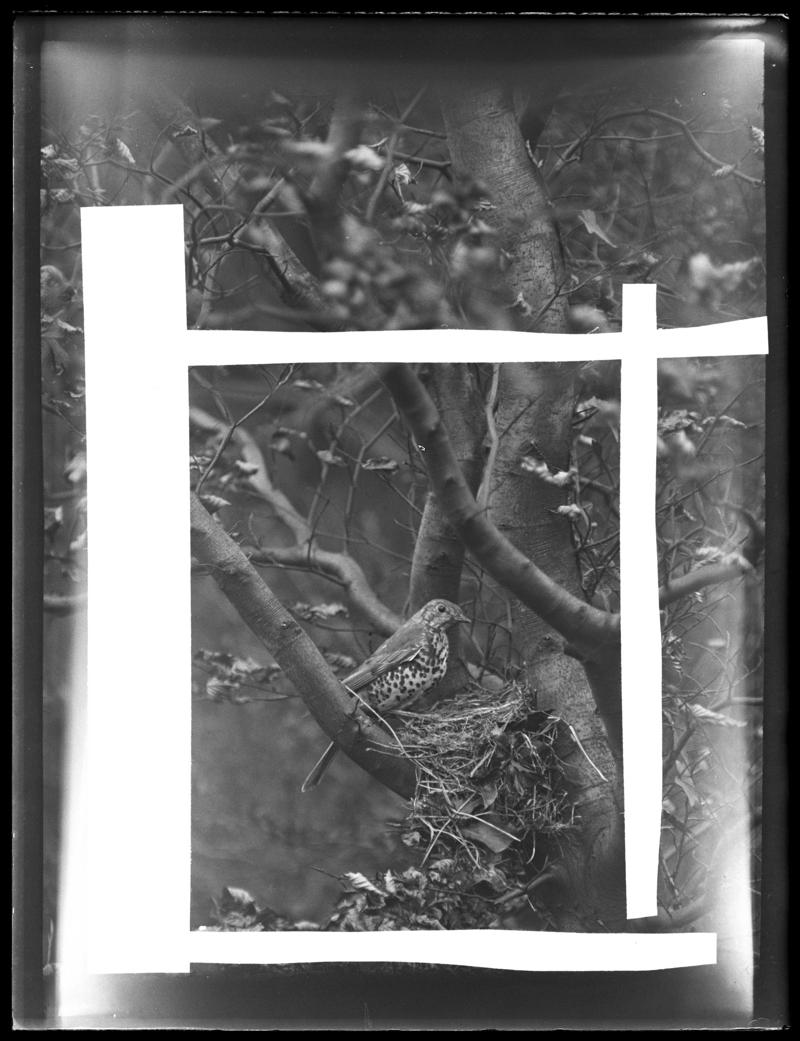 Male and female Robins (Erithacus rubecula) at nest in Wild Park, Roath, Cardiff. Photographed 2 May, 1912.