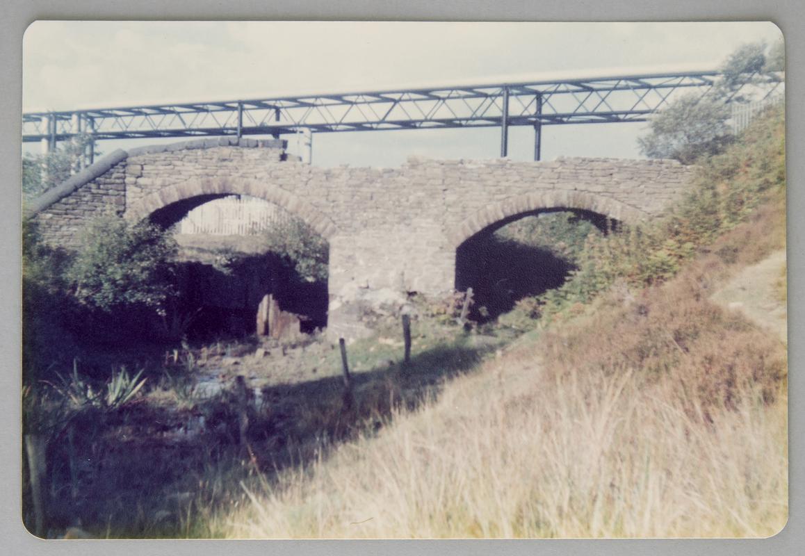 Remains of Red Jacket Canal (Tennant Canal) River Lock, Briton Ferry. General view of lock looking from north east from over-bridge towards lock gate with Red Jacket Pill in the background.
