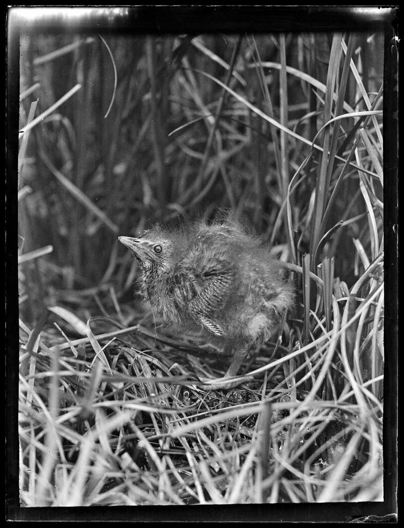 An adolescent Cormorant (Phalacrocorax carbo) with young in nest, Worms Head, Gower, Swansea. Photographed 21 June, 1925.