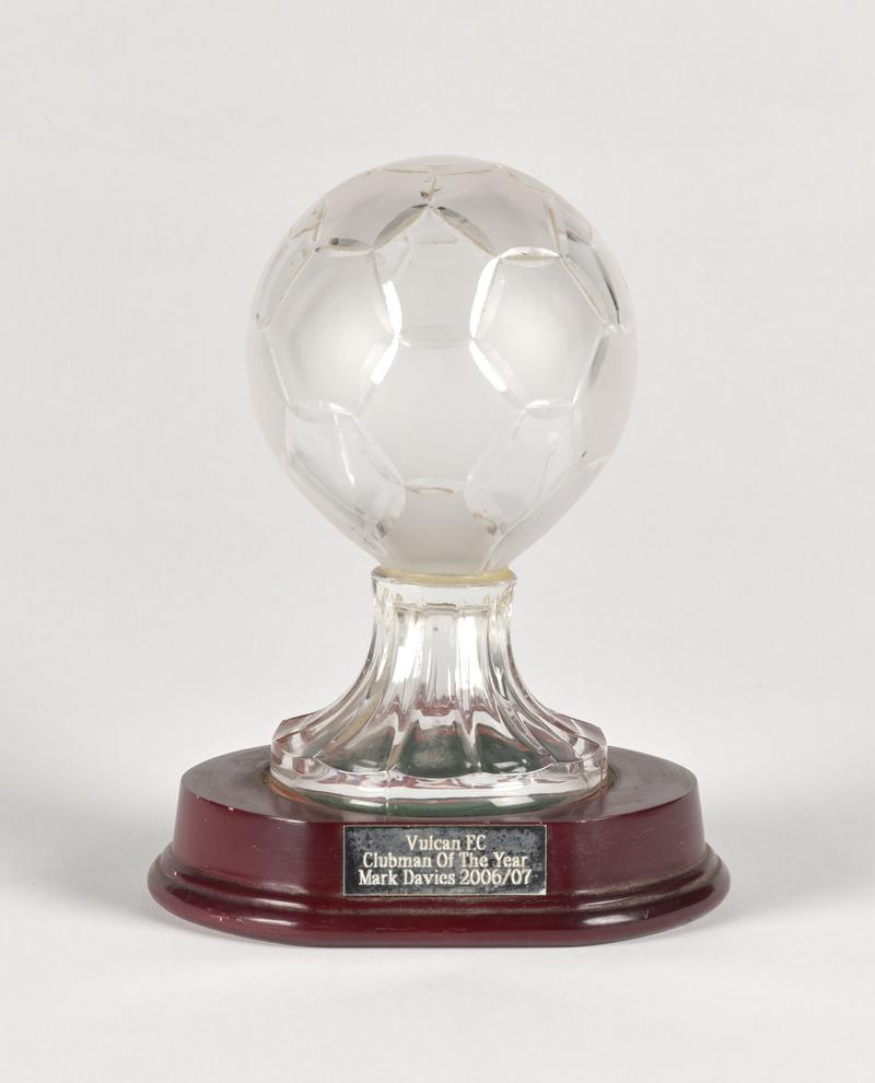 circular two handled sterling silver cup, with engraving; faint marks below hallmark showing series of dates