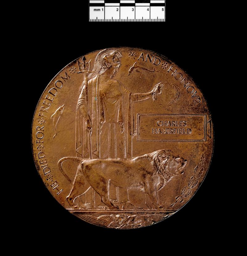 Memorial Plaque awarded to Gunner George Clarence Hannam of the 48th Brigade, Royal Field Artillery. He died on the 23rd November 1917 near Ypres, aged 23.