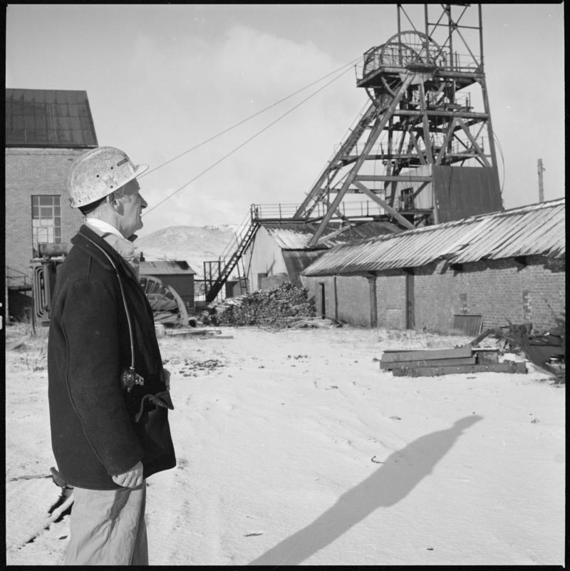 Black and white 35mm film negative showing Celynen North Colliery.