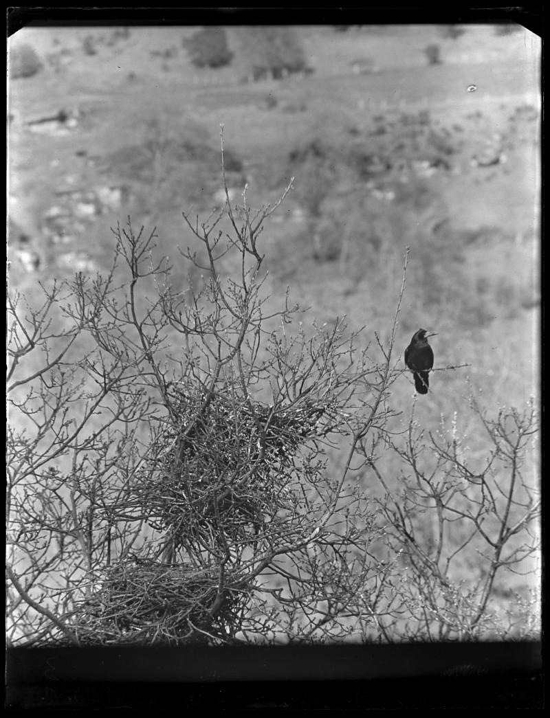 Rook at nest, glass negative