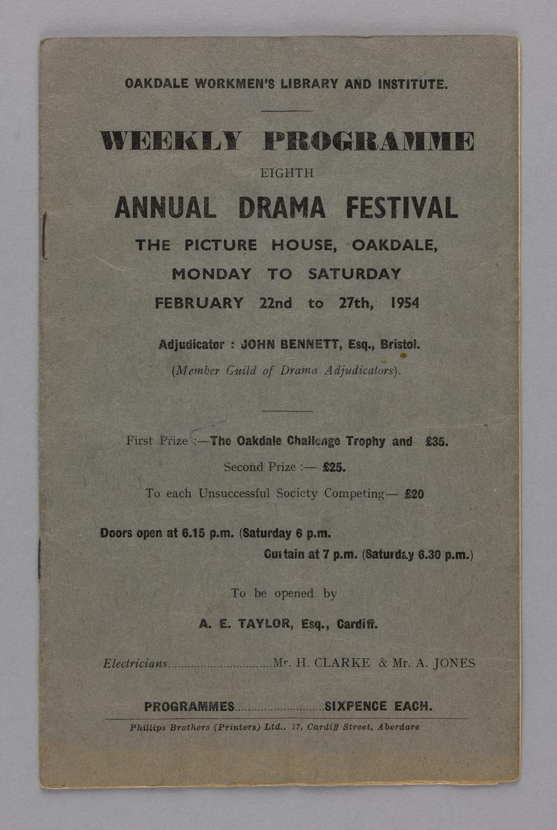 Programme for Llanbadarn Fawr Eisteddfod, 24 March 1956. Printed in Welsh.