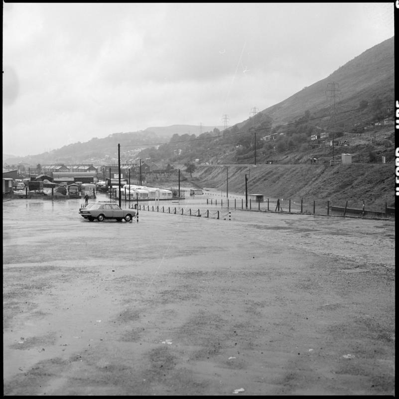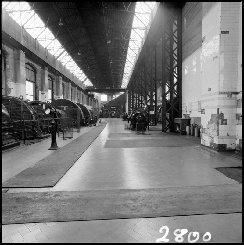 Black and white film negative showing drams at pit bottom, Oakdale Colliery, May 1980. 'Oakdale May 1980' is transcribed from original negative bag.