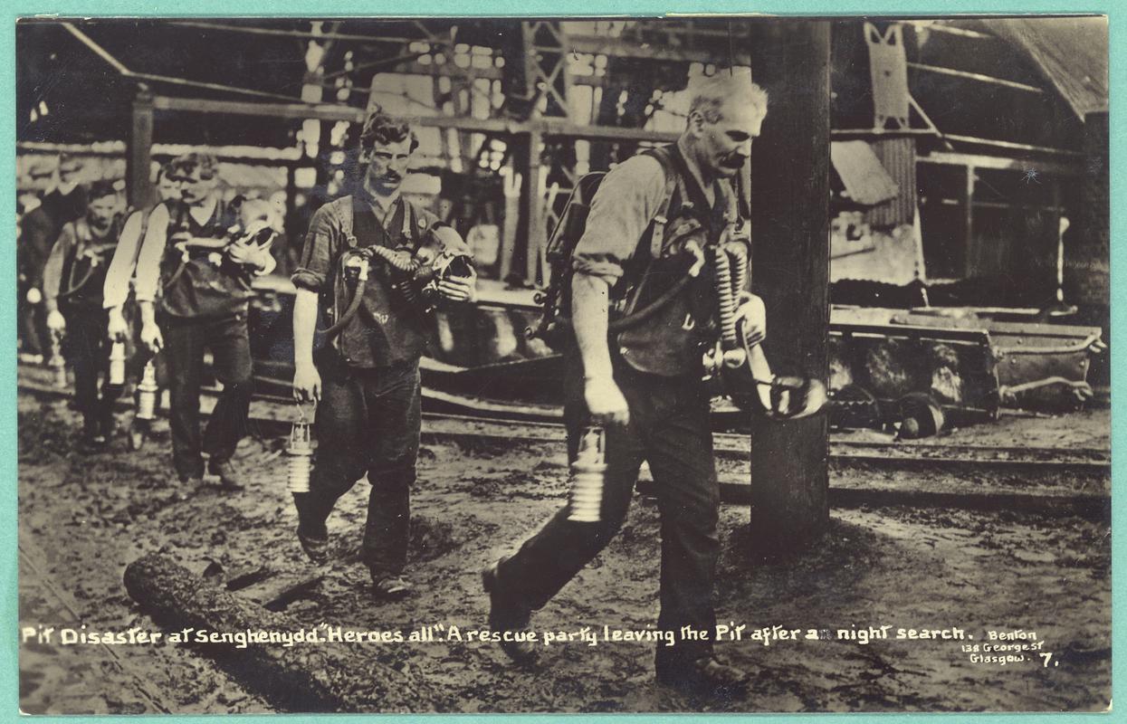Full title - Welsh Pit Disaster. Mr. Keir Hardie. M.P. & Mr. Winston in car speaking to Mr. Brace. M.P. at the scene of the disaster.