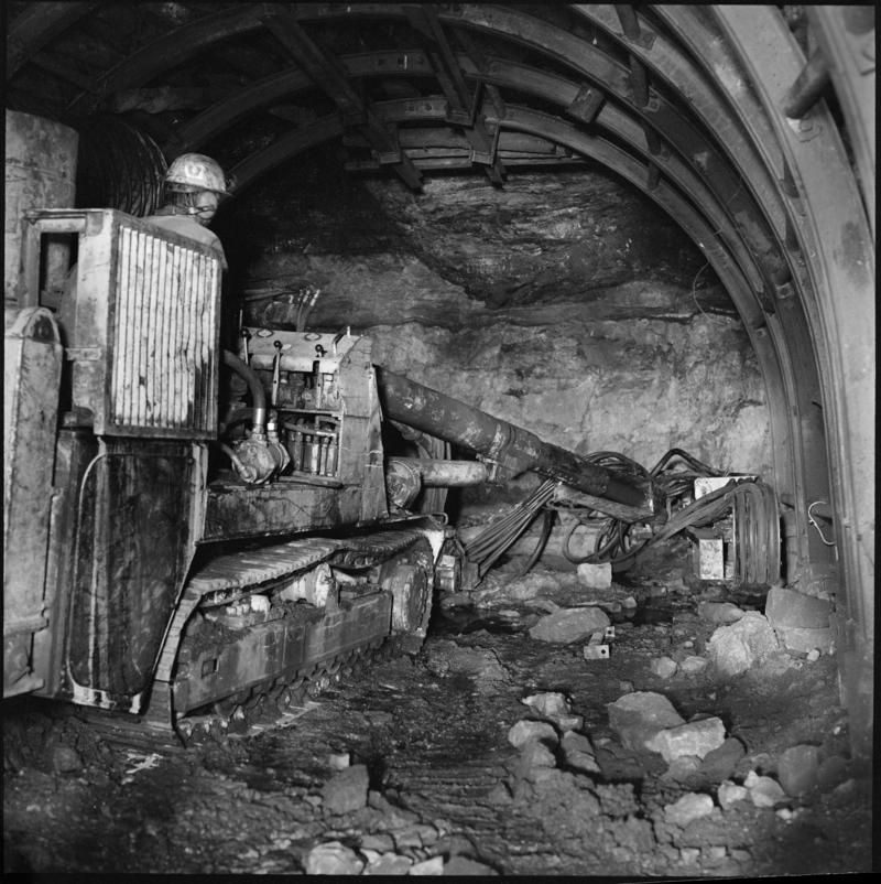 Black and white film negative showing a man operating haulage engine controls, Cwmtillery Colliery.