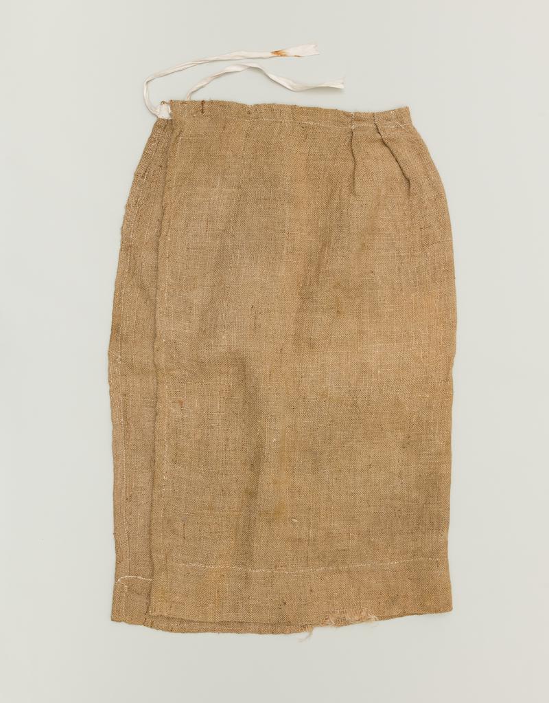Cotton nightgown with square neck. Narrow lace at neck with holes to take ribbon.