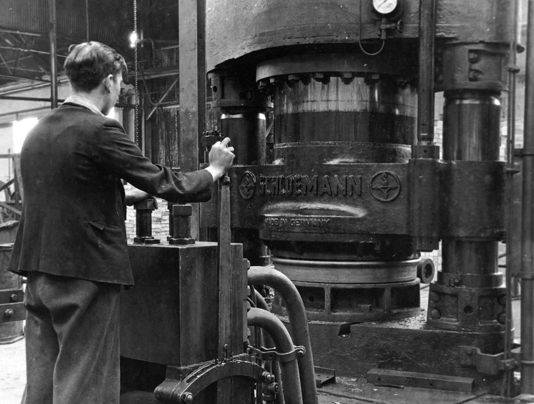 Manufacturing at Blaenavon Ironworks. Print stuck on thin card with holes punched at left.