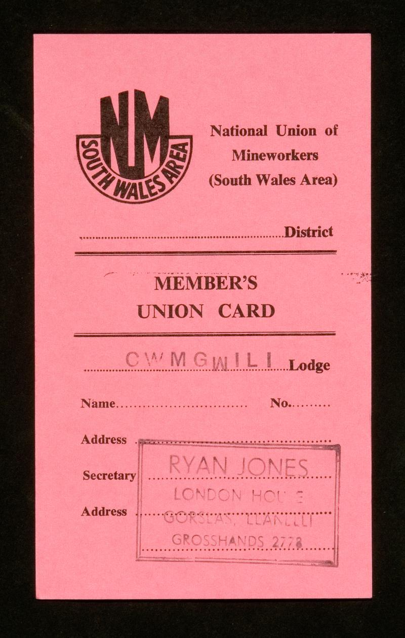 N.U.M. (South Wales Area), honorary member card