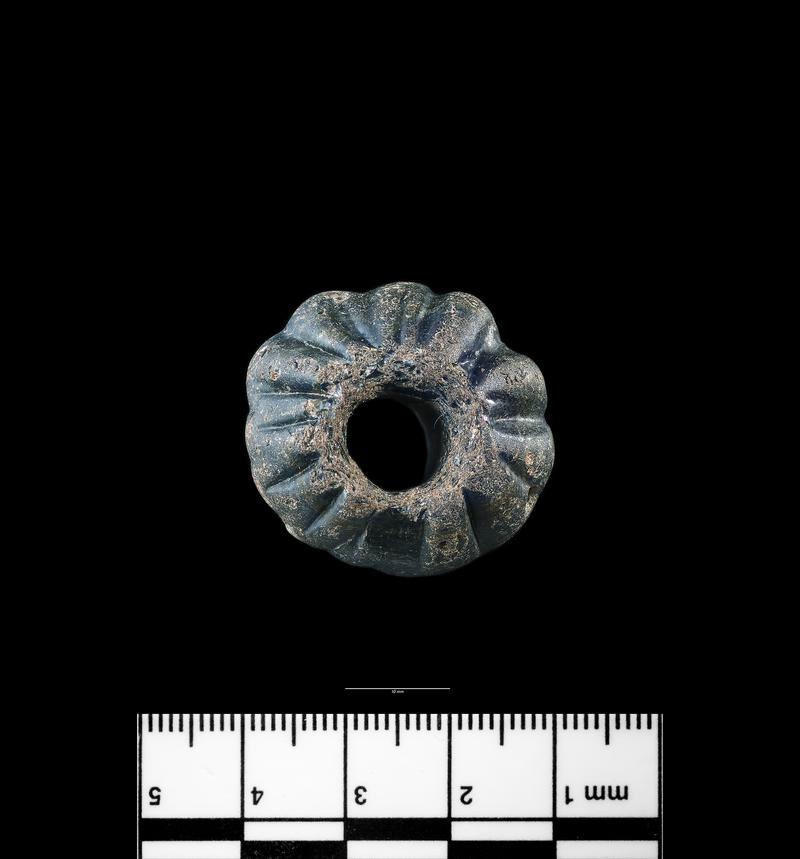 Melon bead of turquoise-blue glass paste. Condition: fragment