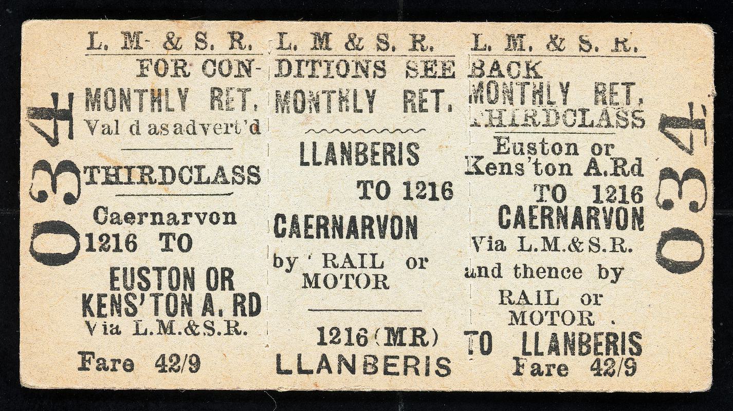 Cream card with black print. L.M. & S.R. third class ticket, Brynmawr to Newbridge (GW), number 9779, fare 1/4½.