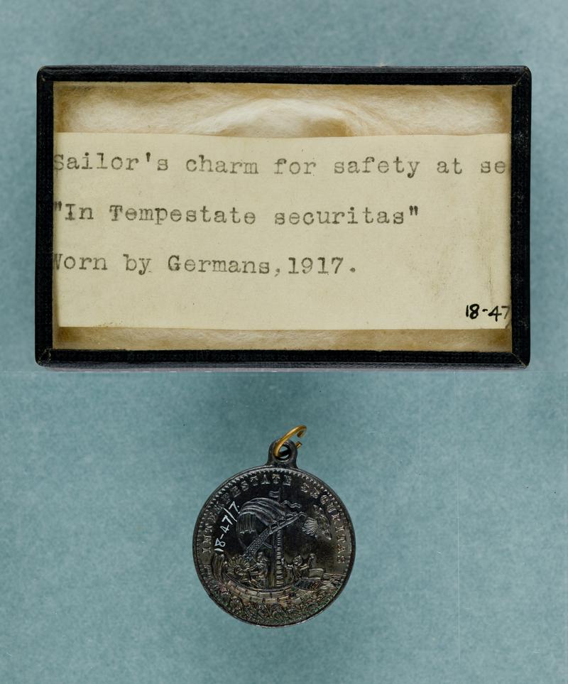 Amulet in a box, with a typed note: 'Dog charm to bring strength. Japan, 1917'. Acquired by the Museum in 1918 from Edward Lovett, a folklorist and collector from Croydon.