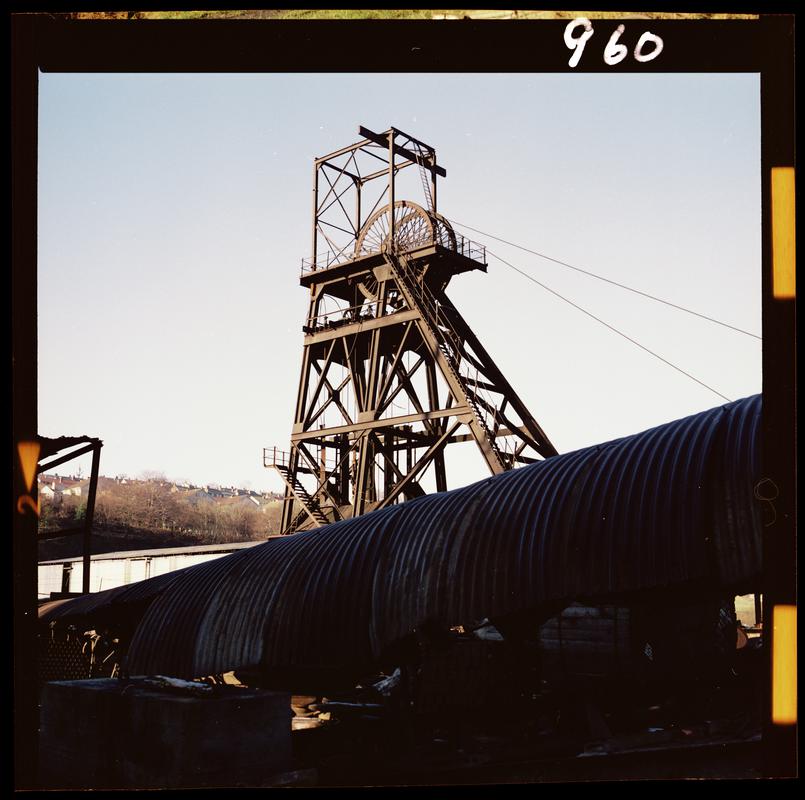 Colour film slide showing a locomotive at the Blaenavon locomotive sheds, August 1973.