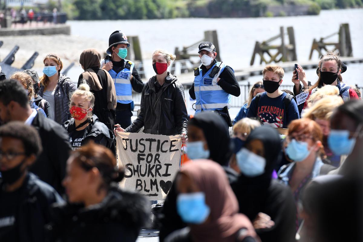 Digital photograph of attendees at the Black Lives Matter Cardiff demonstration held outside the Senedd on 27 June 2020. The demonstration was held to raise awareness of the legal cases surrounding the deaths of Shukri Abdi and Christopher Kapessa. Photograph taken by Tom Martin of Wales News Service.