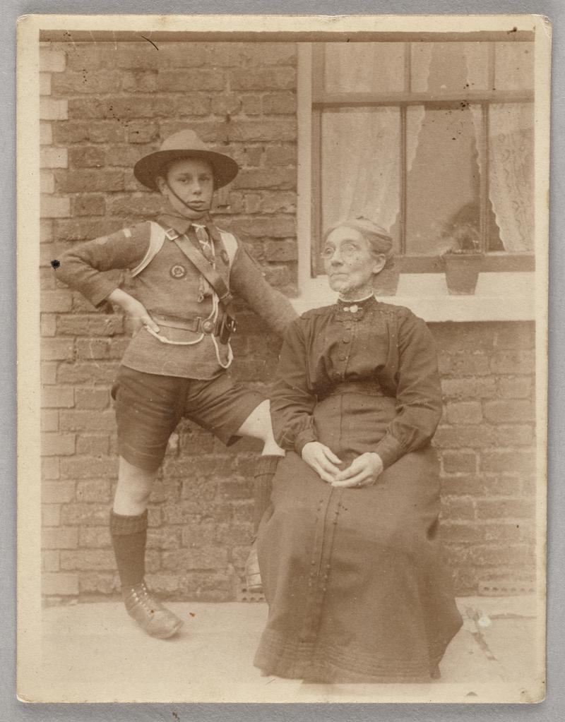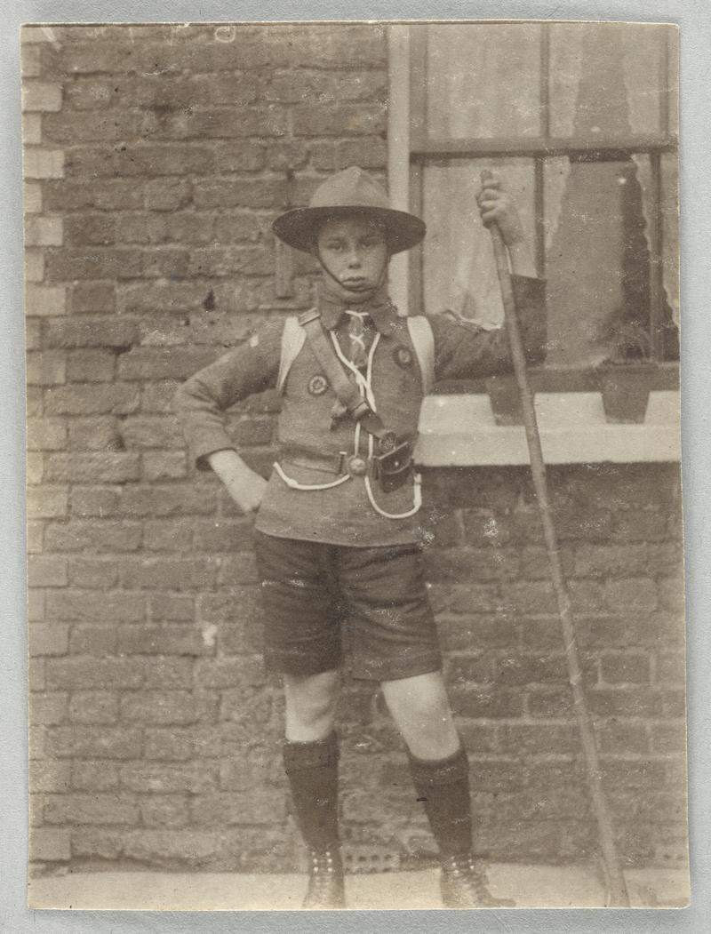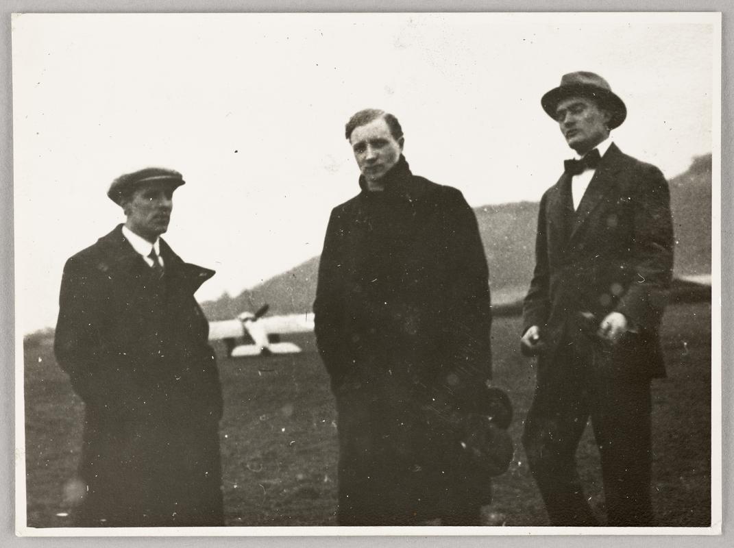 View of C.H. Watkins wearing fur helmet standing next to aeroplane. Printed on a postcard.