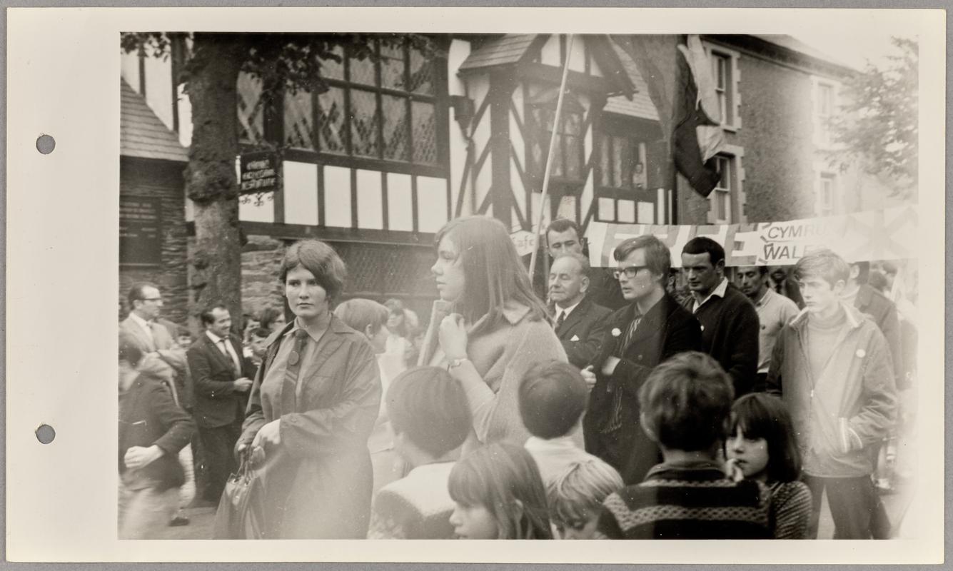 Featuring a hat, a guitar and a bottle on blue synthetic fabric ground. The ground fabric is folded in half, with the crease line along the top edge and the halves adhered together.The blue ground is in the shape of a trapezoid with the bottom narrower than the top. he hat is in the upper centre. It has a flat crown and wide, flat brim. The side edges of the hat are trimmed with a red, white and blue striped synthetic ribbon, with crossed-over ends. The edge of the brim is trimmed with red, white and blue braid. Narrow pale brown strips of soft plastic (faux leather) extend from underneath the hat. The PR strip is looped around the handle of the bottle. The bottle is made from black plastic and the handle and lower part are made from, and covered with, braided strips of the faux leather. The guitar is on the lower PL side of the souvenir. It is made from faux leather, dark brown thin card side edges, a black painted wooden stick and yellow thread is used for the strings. The assembly is framed on three sides (bottom and sides) with strips of faux leather which has been cut with zig-zag edges. The side strips extend and are folded over to continue on the reverse to join up with a horizontal strip along the bottom edge of the reverse. The six tuning pegs of the guitar are drawn on in black. The word CHILE is written onto the crown of the hat in black marker. A brown, shiny adhesive has been used throughout which has almost failed. A small faux leather loop for hanging up the souvenir has been attached to the back.