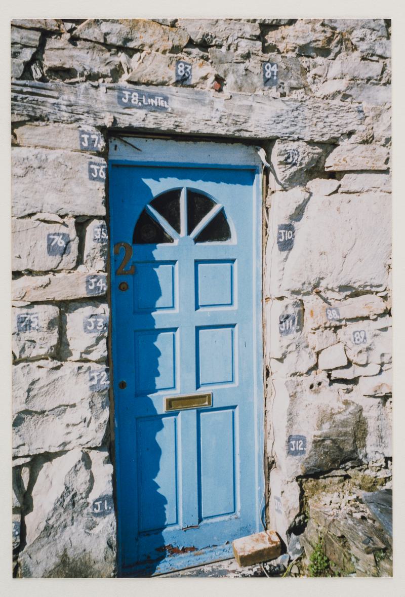 Exterior view of 1-4 Fron Haul, Tanygrisiau, with stones numbered ready for dismantling.