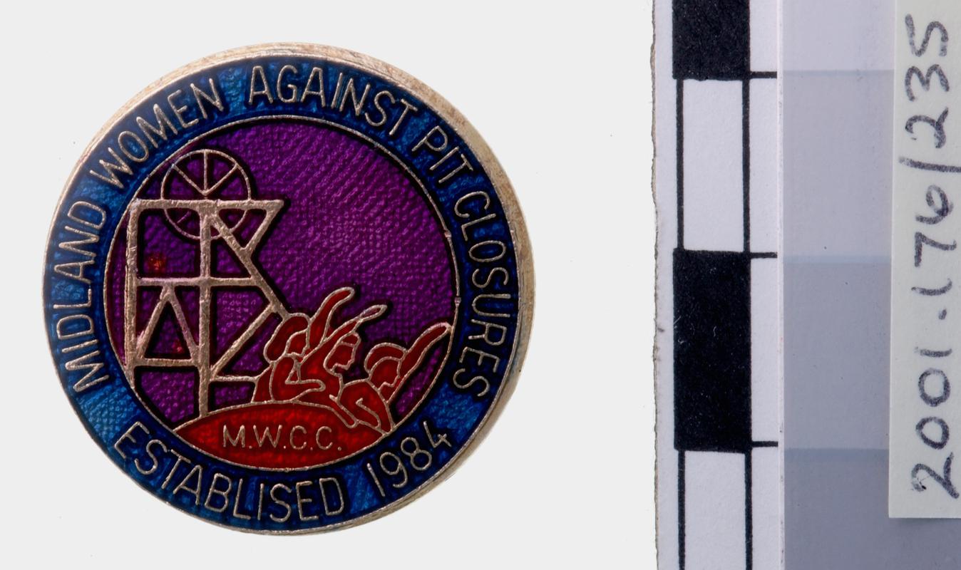 N.U.M Great Britain/S.Africa 'Brothers in Struggle' badge. Circular gold coloured metal badge with design and inscription set in mainly black and red enamel. Clasp attachment on reverse.