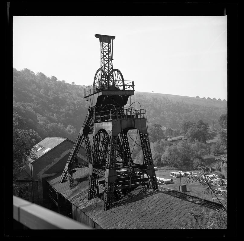 Upcast and downcast shaft headframes, Markham Colliery, 1977.