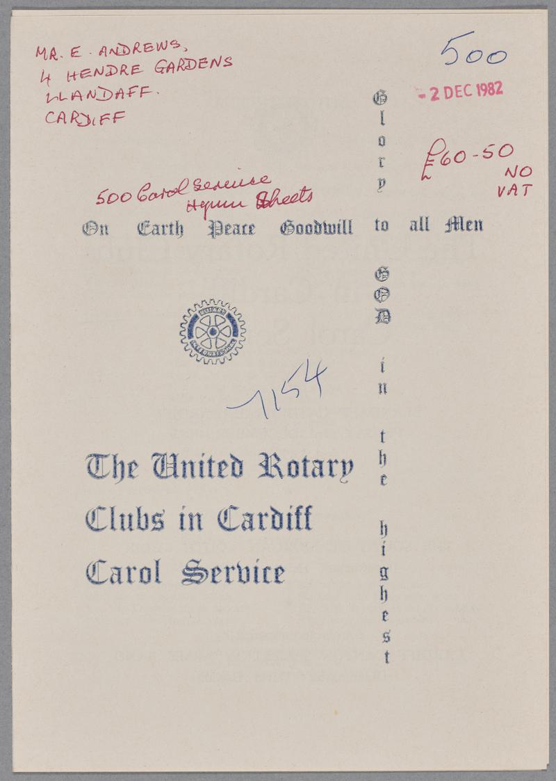 Programme for the Coal Industry Social Welfare Organisation's 'Eleventh Annual Brass Band Contest, Trecynon Coliseum Hall & Institute, Saturday 24th June 1978'. Five pages. Handwritten order details on the front. Stamped with date 21 June 1978.