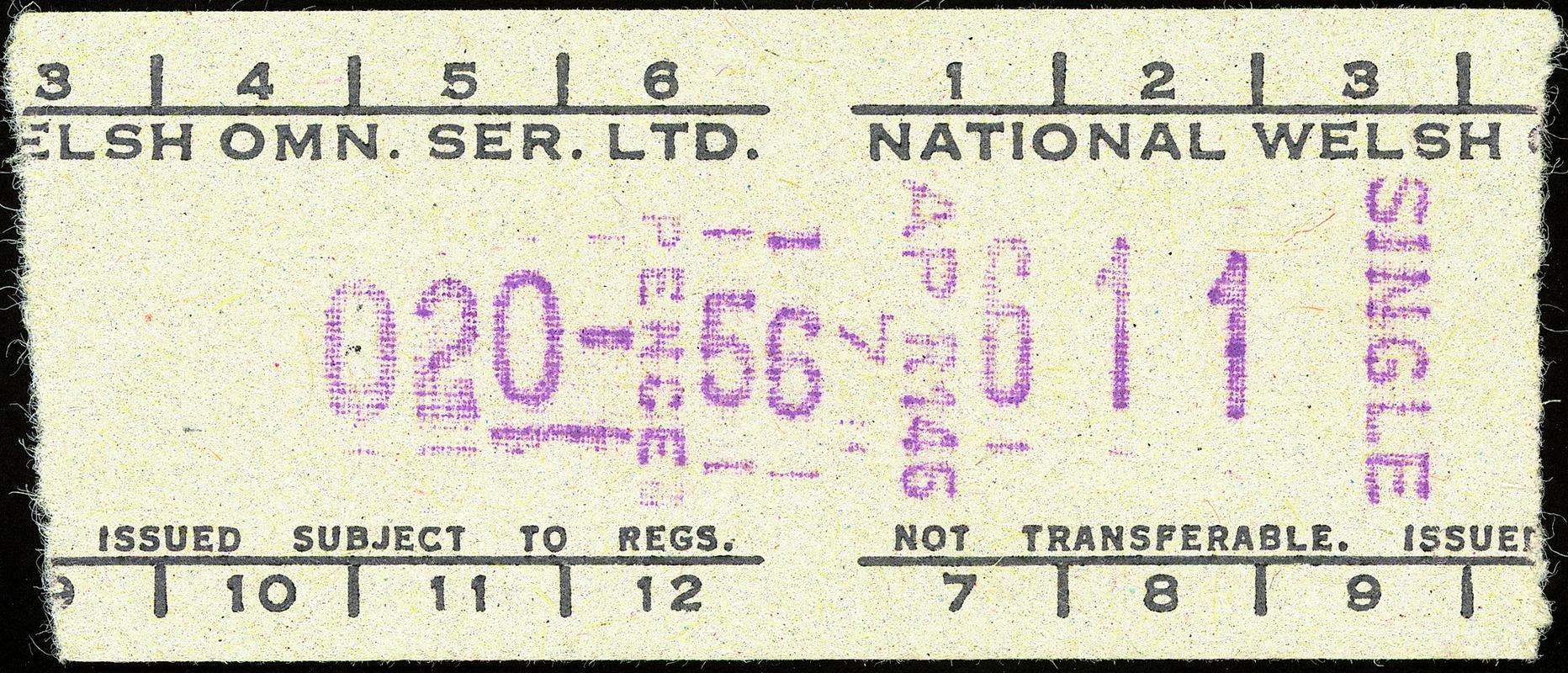 Black and blue print on cream paper. Western Welsh Omnibus Co. Ltd. bus ticket (Setright type). 'Bell Punch Co. Ltd, London' printed on rear.
