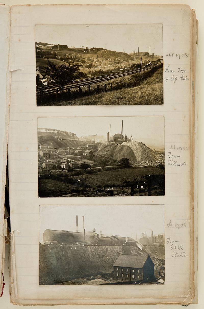 Middle print on page 1. Photograph showing the works and surrounding area, captioned "From Pwllcadi", handwritten in ink, on right-hand side of print.