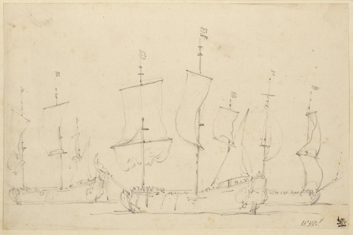 Sketch of Three Square-rigged Ships - Collections Online | Museum Wales