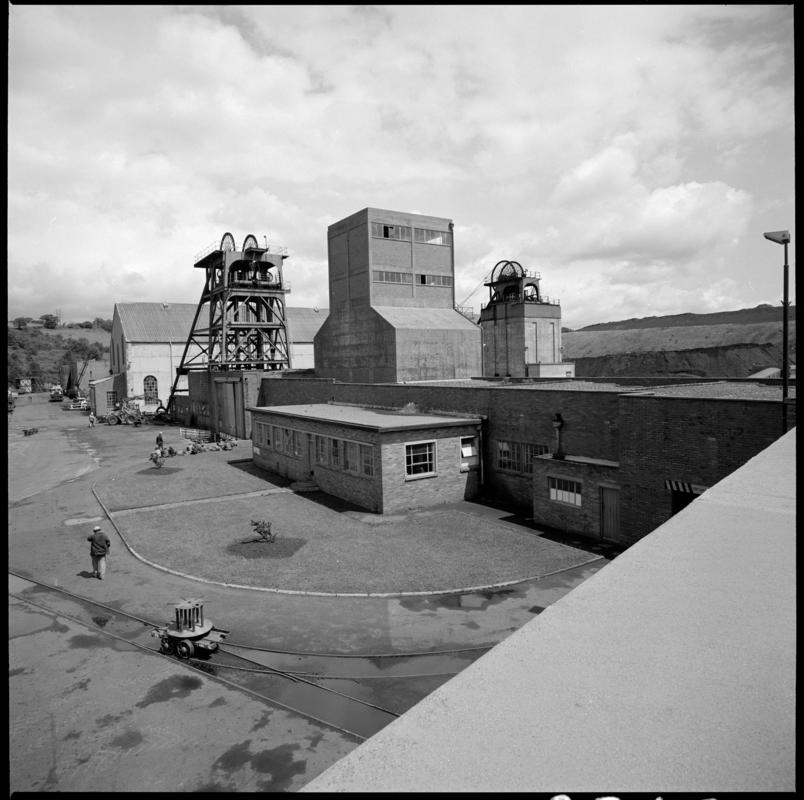 Black and white film negative showing a surface view of Cwm Colliery, 1978. 'Cwm' is transcribed from original negative bag.